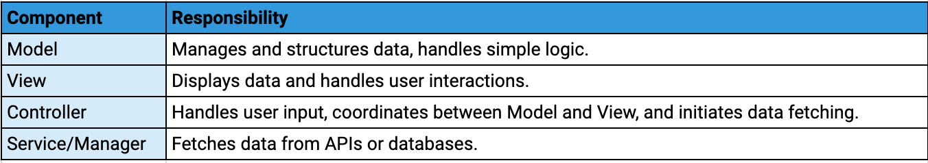 Imagine you’re building an e-commerce app where the Controller is responsible for managing the cart, checkout process, and user authentication. As more features are added, this Controller can quickly become large and difficult to maintain.